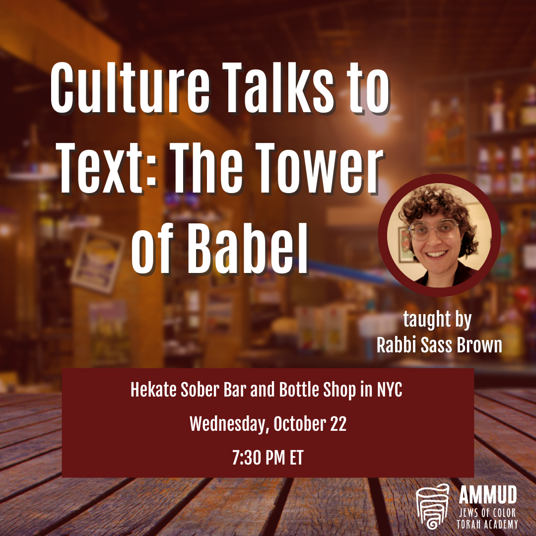 Come join Rabbi Sass for in-person Ammud gathering in Manhattan! We'll learn from the week's Torah portion, asking, what can humans accomplish with better tools for cross-cultural understanding? Then we'll relax together in JOC community - the first drink's on us!